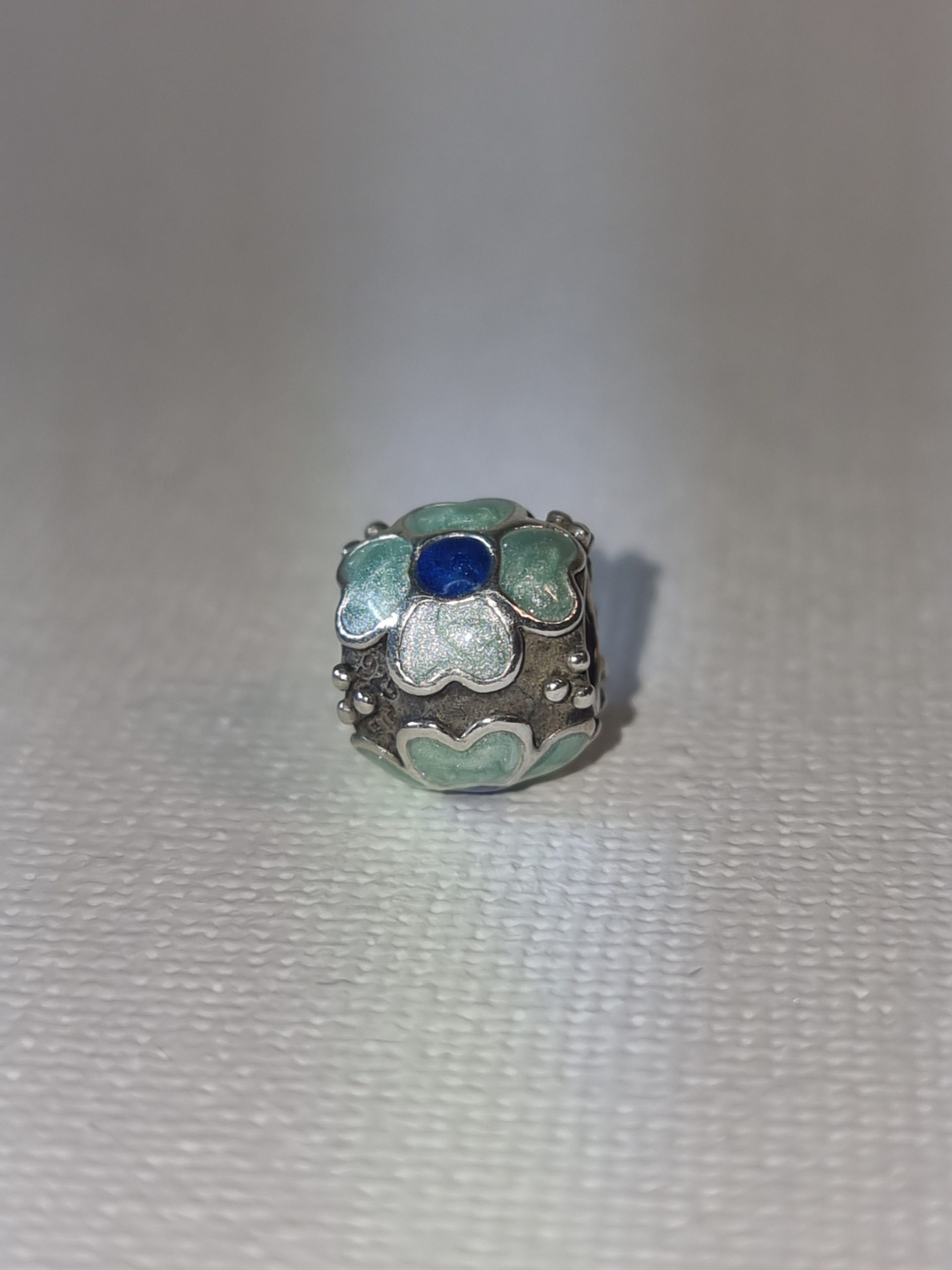 Item 2 £15.00 Silver Four Leafed Clover charm with Pale Blue and Green Enamel Excellent conditionALE 925 makers mark in great condition