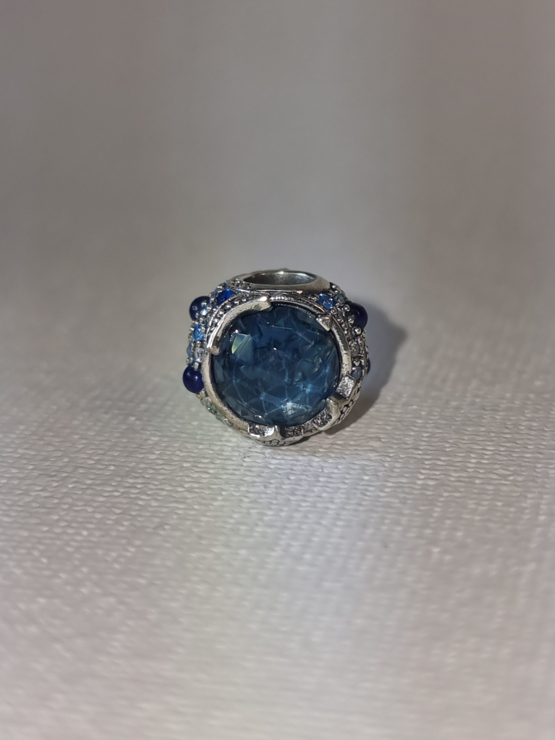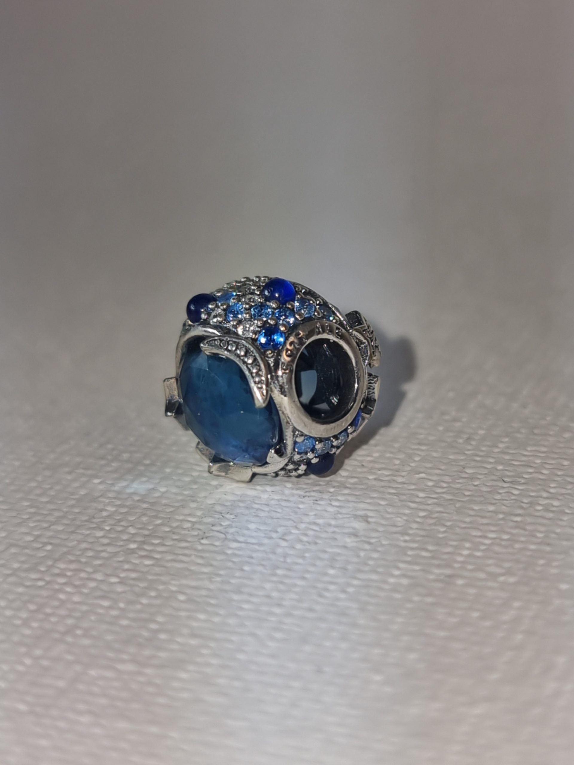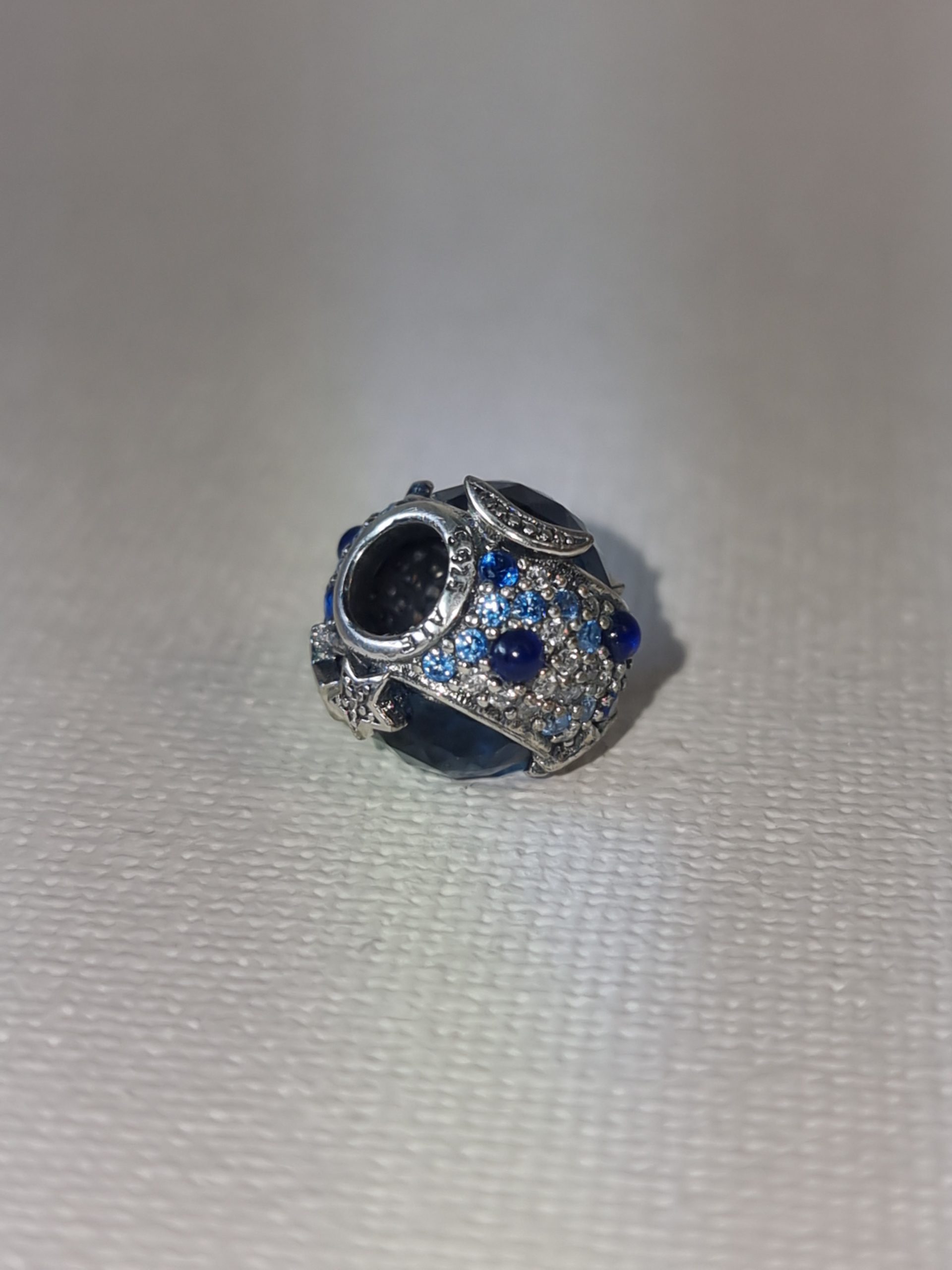 Silver Moon and Stars charm with Blue Gem surrounded by sparkly pavé